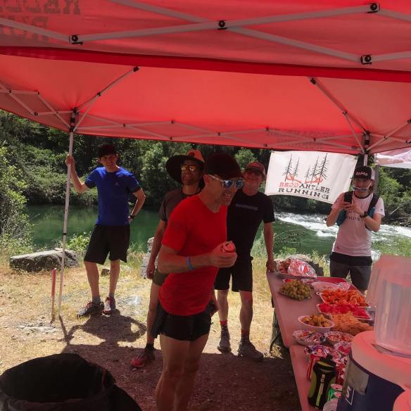 Pace, eat, drink, smile. Momentum in the moment. Up to the turn-around through Eldorado Creek and we start making our way back to the half at Foresthill. On the way back I catch up with with a few guys and come through the half in around 10th. My race-plan going into this one was simple—take the first half to warm up and race the second half. I take off down Cal St. as runners from the 25k were finishing up their races.