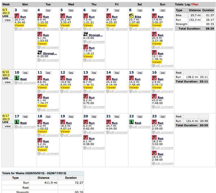 In order to run the second half of TRT and slow no more than 14%, two things had to happen: One, I’d need to be able to run approximately 9:50/mi over the first half and have that effort be at a HR less than 142bpm (my avg HR for two relatively recent 50mi events). And two, I’d need to have the muscular endurance to hold at least 11:30/mi over the second 50mi. June training was designed to attend to both of these issues.