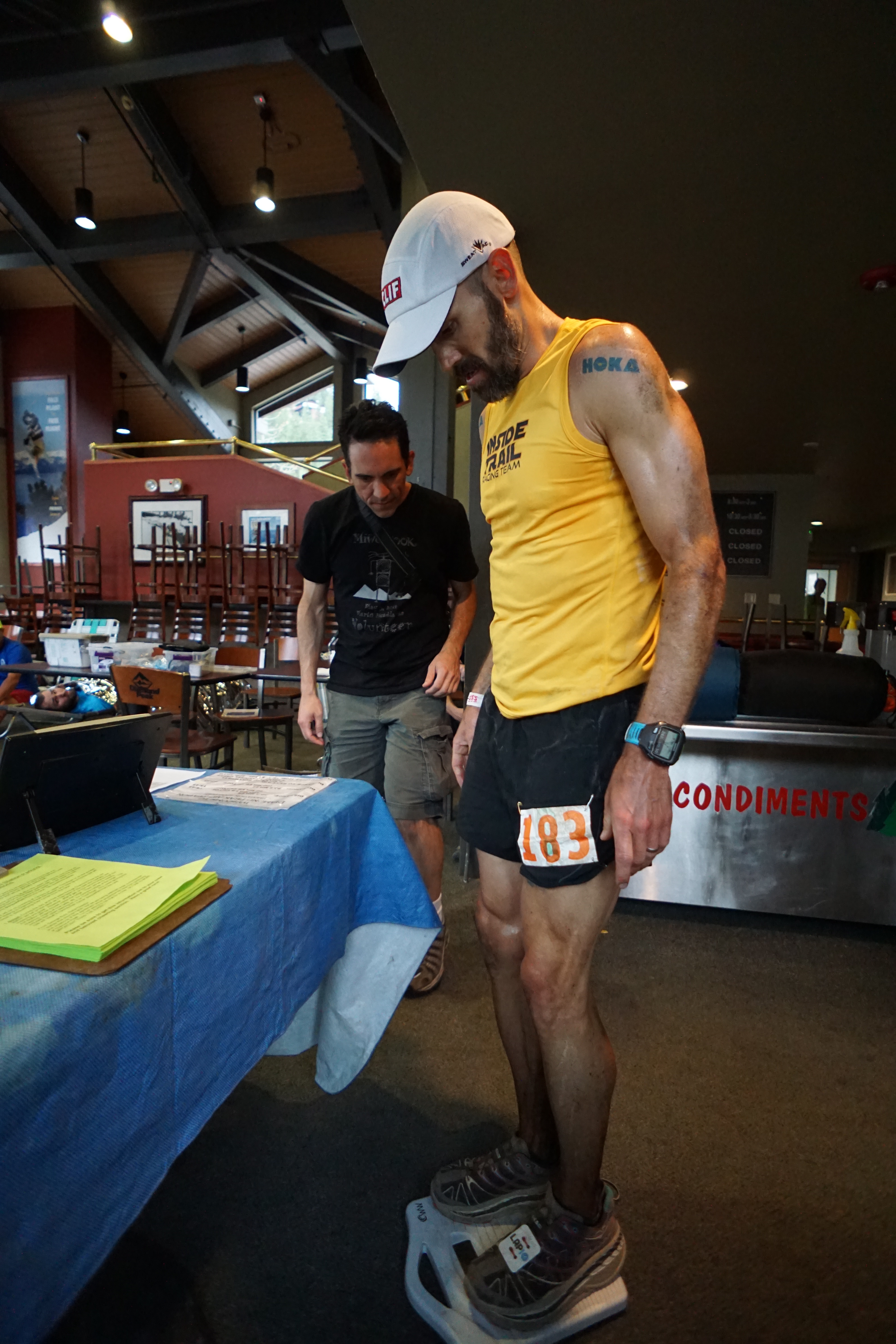 As I arrived into the Diamond Peak parking lot and looked up onto the first landing there at the lodge, I didn’t see a soul. I was feeling pretty vulnerable as I made the turn, unsure I’d see my people. “Please be there…” Boom, there was Amanda, who’s eyes got as big as saucers when she saw me rounding the corner. It was awesome to have my rock-star Inside Trail Racing team-mates, Chris Wehan (with his Western-States-running-girlfriend, Melanie Michalak) and Luke Garten, there for support. These fun-loving young guns inspire me.
