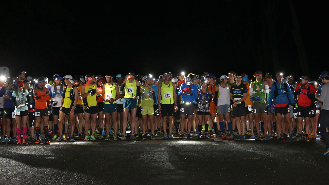 Stacked field at the 4am start of the 2015 Gorge Waterfalls 100k. Photo credit: Glenn Tachiyama