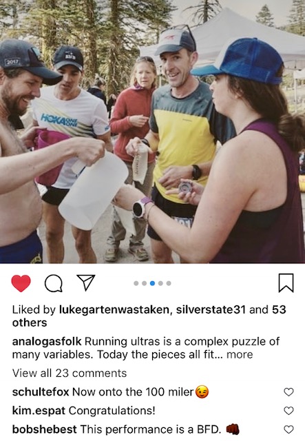 A heartfelt thanks to my beautiful and highly supportive wife/agent Amanda for her thankless job as “First Responder” and always picking me up after I’ve fallen. | Thank you to Hoka One One for your continued support, innovation, and producing the best shoes out there—#speedinstinct #timetofly! | Thanks to Vitargo for the steady energy and SIMPLIFYING my nutrition. | Thank you Healdsburg Running Company for all the wonderful support from the HRC/H-Burg crew!! | Victory Sportdesign produces the best drop-bags in the biz! | Thank you to Julbo Eyewear for the beautiful, functional, and comfortable sunglasses. | Thanks to Dave Townsend at Santa Rosa Physical Therapy for helping me manage all of my issues and keep on runnin’ >>>